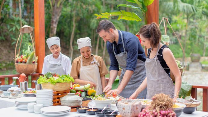 Guests can enjoy attending Vietnamese cooking classes, Tai Chi classes, or select from different tours available. Alternatively, the resort’s swimming pools and the spa offer many ways to relax.